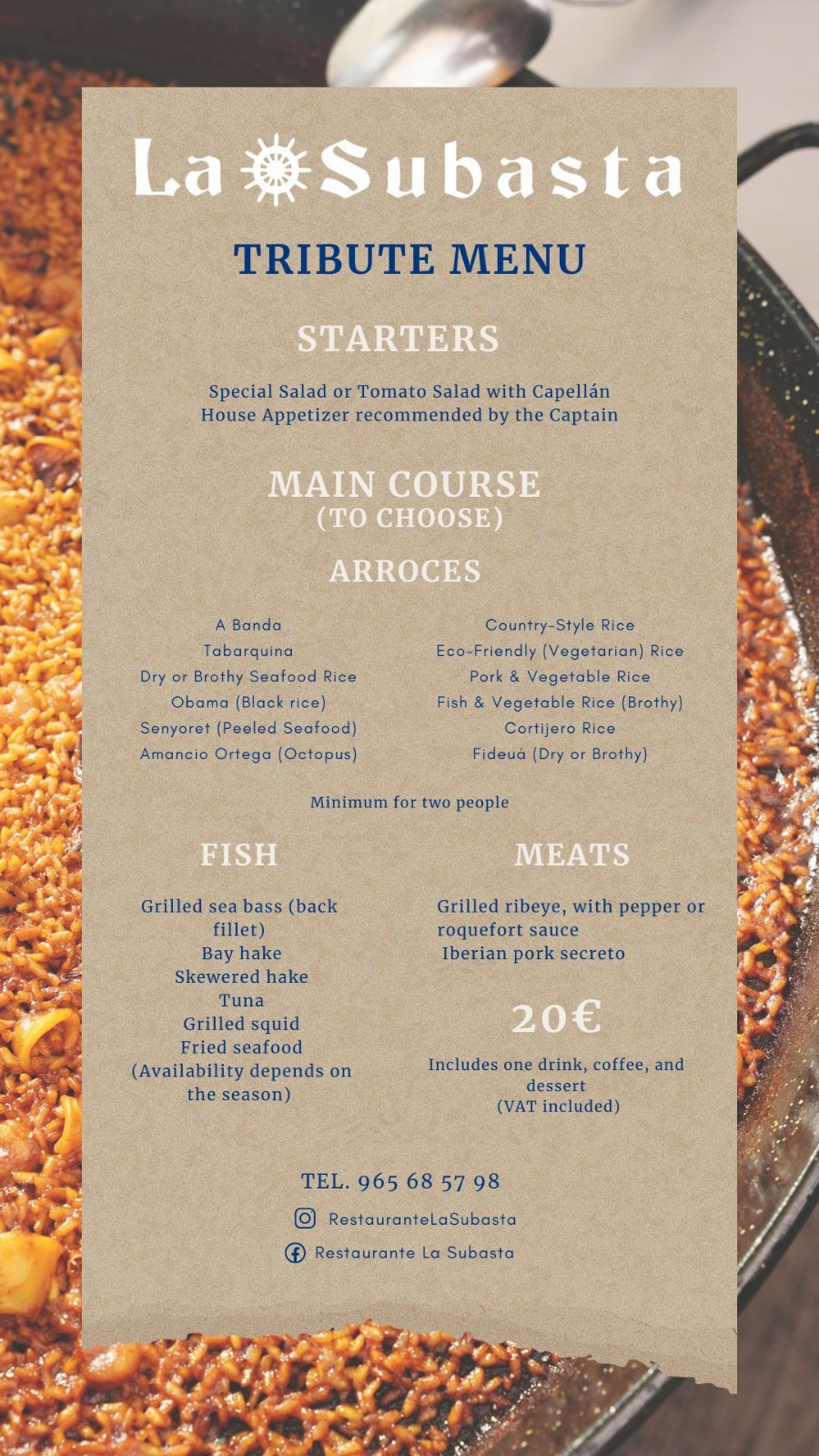 Menú Viernes y Sábado – Restaurante La Subasta Torrellano